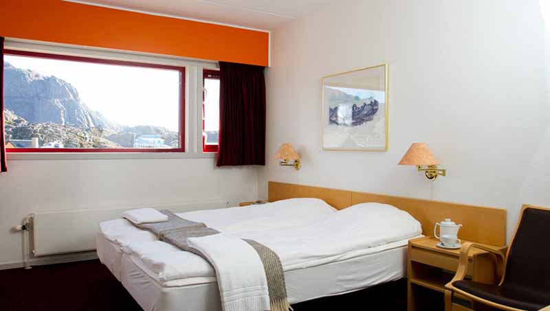 Here you can find detailed information of hotels in different areas of Greenland, for example basic facilities, room size, check in and check out and more. Check the room types and the basic facilities before booking.
