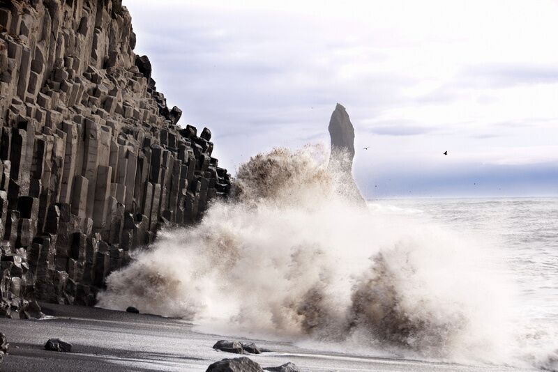 Continue driving and you arrive at Vik, where the famous black sand beach is located. The soaring basalt rock formation known as Reynisdrangar is a vivid example of a masterpiece created by mysterious nature. Throughout this journey, you will find the beauty of Iceland hard to describe using only words – you must experience it with your own eyes, so make sure you bring your camera!